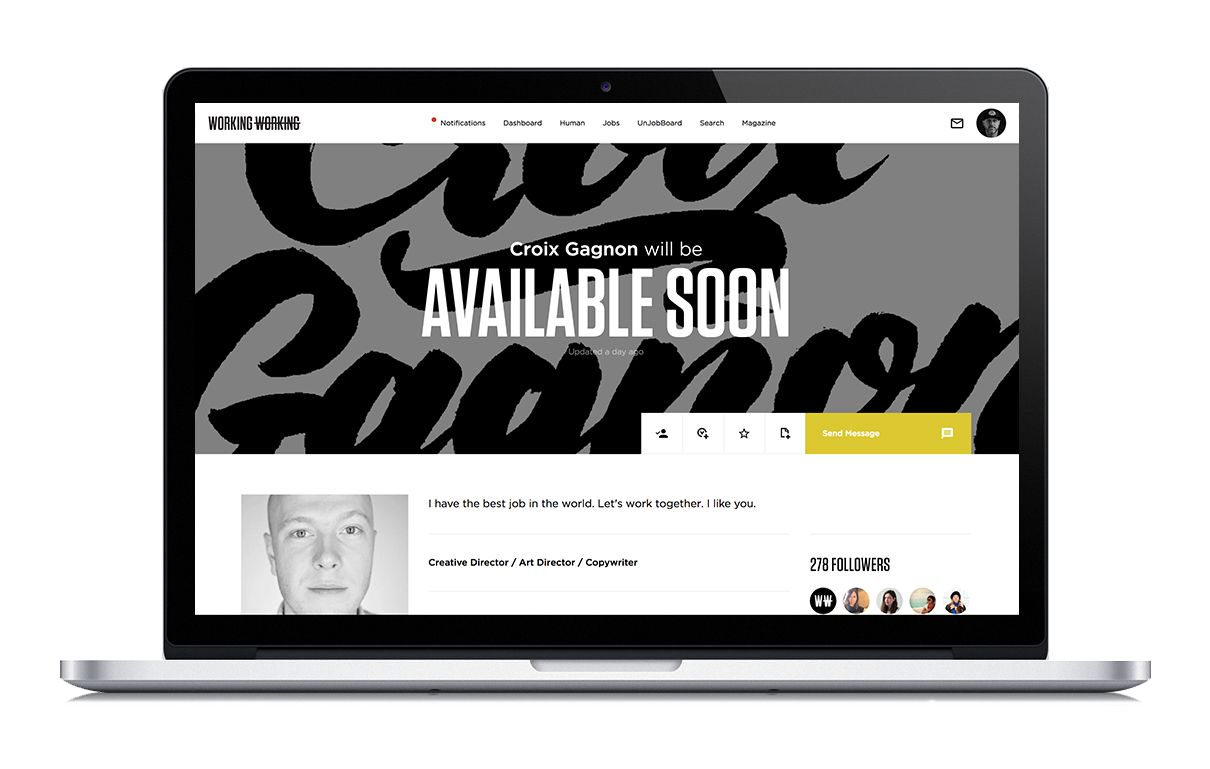 Working Not Working launched January 2012. The first real-time network for the best freelance creatives in the Universe.